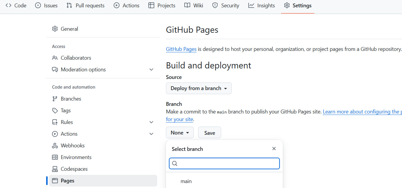 对于一般的静态网页而言,我们只需要将jekyll项目提交到名为username.github.io的仓库中(名字需要和github的账户名字一致,否则会无效),然后再选择Settings-Pages-Deploy From a Branch,branch-main。完成设置以后,就可以实现静态网页的部署了,Github会在Action中自动新建一个名为pages-build-deployment的工作流,每次选定的分支(main)上发生推送时会自动地构建和部署网页。